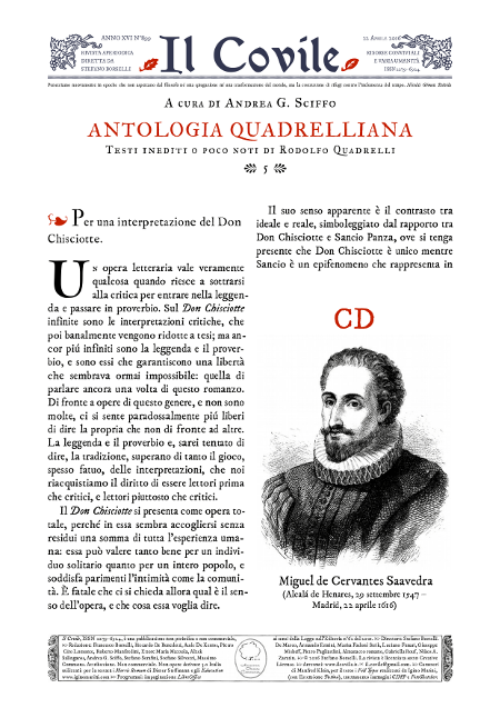 Con queste parole: «L'Italia non è un paese moderno, e non è detto che questa sia una disgrazia», pronunciate nell'autunno del 1972 durante una conferenza milanese voluta da Vanni Scheiwiller e poi edite in volume presso Rusconi col titolo Il paese umiliato, Rodolfo Quadrelli formalizzò uno dei tanti suoi krausiani aforismi, di cui intesseva la proprie prose (dallo «stile eccezionale», a detta di Prezzolini). ¶ La presenza intellettuale ingombrante della quale era per natura dotato lo aveva già reso una figura nota, nel panorama delle lettere tra gli anni Sessanta e Settanta: docente nei licei, indugiò sino ai trent'anni (in un'epoca di arrivisti che ambivano a «pubblicare» a tutti i costi, forti dell'onda del giovanilismo) per dare alle stampe il suo primo libro, di sconvolgente bellezza, oggi paragonabile alle poetiche di un Boileau o di un Muratori, benché di segno inverso. Tra quelle fitte pagine, Quadrelli aveva scolpito nel bronzo aereo della letteratura di ogni tempo la sua definizione di tradizione, che è ciò che può non essere mai stato ma che avrebbe potuto essere e che ancora potrà essere. Si procurò subito, con le armi della correttezza personale e del rigore dell'intelligenza, dei nemici (come Umberto Eco, piccato per il quadrelliano pamphlet contro i potenti della letteratura) e dei sodali (Quirino Principe, Arnaldo Di Benedetto, Augusto Del Noce); cercò sempre degli interlocutori (del calibro di Elemire Zolla, Giuseppe Prezzolini, Sergio Quinzio, Nicola Chiaromonte, Franco Fortini, Rosario Assunto, Ennio Flaiano) verificando come il nichilismo avesse già corrotto molti cuori, con la filosofia implicita dell'indifferenza. Infatti, molti colloqui caddero nel vuoto benché l'oggetto del dibattere fosse sorprendentemente vario, dalla poesia all'architettura, e però sorprendentemente unitario: questo, perché Quadrelli possedeva «il senso del presente». ¶ A partire dal 1969, la pubblicazione di libri, saggi e di un numero sempre crescente di interventi giornalistici, rese Rodolfo Quadrelli il vero protagonista del controcanto culturale dell'Italia del conformismo e degli anni di piombo: malgrado fosse noto a pochi, in vita, e dimenticato quasi subito, in morte. Ma di questo autentico philosophe inconnu che si oppose con tutte le forze (morali) allo strapotere dell'ottusità ideologica, scrivendo cose memorabili contro la delinquenza mascherata di accademia e/o di specialismi, e contro il violento qualunquismo di giornalisti e opinion-makers, su questo sito esiste la riedizione commentata di alcuni scritti scelti, consultabile qui sotto. ¶ Poggiando sul fatto che ci sono sempre uomini singoli o frange di popolo che «preferiscono la catastrofe alla dissoluzione», il corpus di scritti quadrelliano è ora un lascito, intatto, che attende da imprevedibili eredi di venire attuato: possibilmente, quando ai pensatori verrà di nuovo chiesta la stoffa leibniziana di saper unire la teoria con la prassi e quando si esigerà che lo scrittore possegga la tempra del dissidente, alla Solzenicyn. ¶ Assieme ai non pochi lettori del Quadrelli postumo, a questo proposito il mio sguardo è speranzoso perché «se non si è moderni, si soffre di piú, ma non è detto che la sofferenza non sia segno di superstite salute». (A.G.G.S.)
